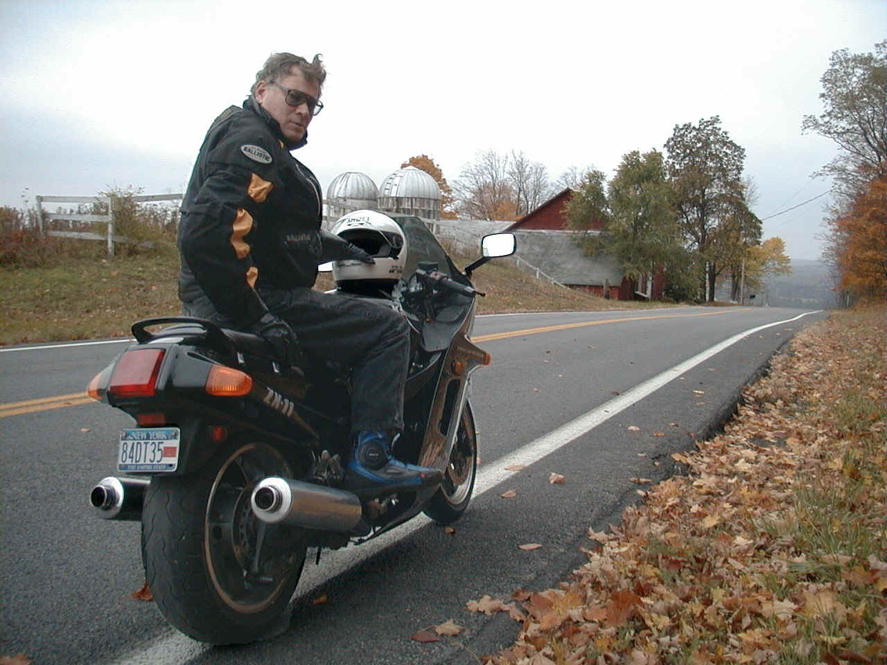 I found this big Ninja in Ravena and bought it the fall of 1997 for $5,500 from a guy who said he used to drag race cars at Lebanon Valley but "didn't do that any more." Sure. The bike had new tires front and rear, indicative of a hard first 4,500 miles, but it was the bike I wanted, the color I wanted and I liked the price. So I took the chance that it wasn't beat on too much. |