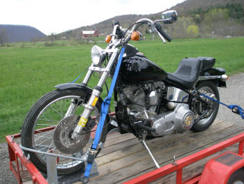 | The bike gets a ride back to Schenectady on a flatbed and goes back to Scott in Elmira for $4,000 worth of repairs paid for by other driver's insurance. |