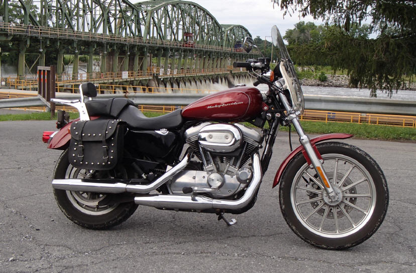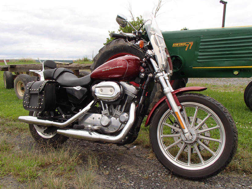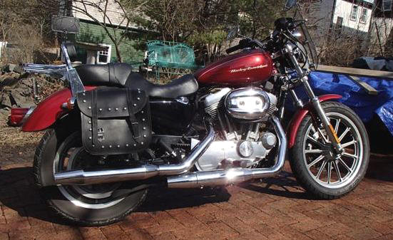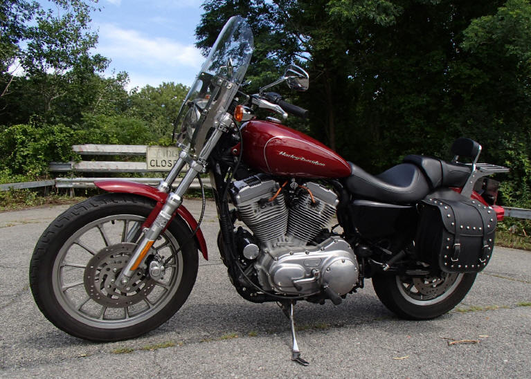 I registered the bike one week later using the plate from the Honda Blackbird 1100 which I hadn't ridden yet this season. The tires needed air and it was low on gas, both due to infrequent use I figured. I had to remount the windshield. The clamps were below the fork stops so they would have limited travel to about 2 inches. I've taken off the trunk and given that away. Same with the chaps and gloves.