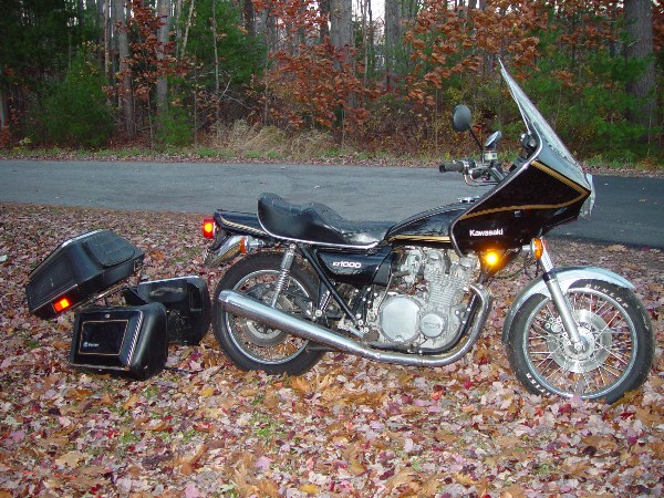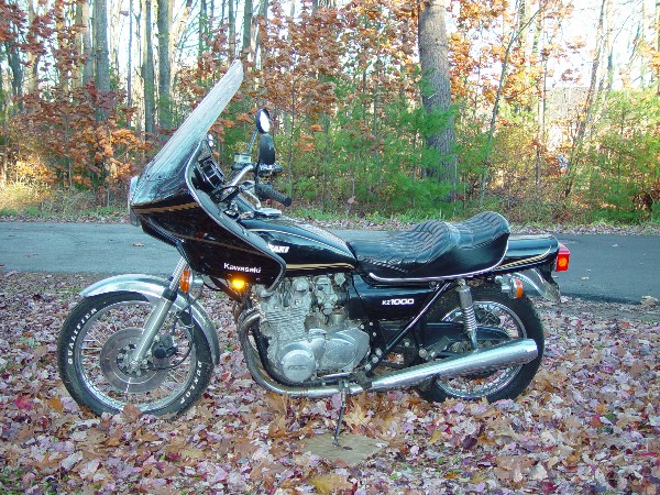 | How I Got This Bike It's January 2002. John Mishanec is nearly done with the KZ1000 custom he's rebuilding, and he wants to buy me out of the Jimi Hendirx drag bike that we share. The 73 Z1 engine is in pieces in my basement. If he gets the dragbike, he'll have two running bikes and I'll have nothing to show for all of this old bike stuff we've been working on for two years. Scanning the ads in KZRider.com, I see a 78 KZ1000 for sale for $1,200. No picture. I email the owner and he sends me two 2mb jpegs. The bike looks very original with just the seat, fairing and luggage added. The photos are so detailed that I can see the rust spots on the front fender and the oxidation on the engine. We exchange more emails and I find out that he's not ridden the bike much at all. He says it has 7,000 miles on it, (almost unbelievable), comes with the fairing and hasn't been used in a few years. His ad is from the previous fall and the picture seems to match that. I figure he's had it for sale since then with no takers. The bike's in Saco Maine. I talk John into a 550 mile Saturday road trip.  |
