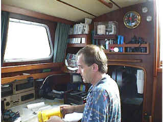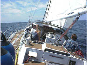 On board, July 19th, 1998, Port Washington harbor, Long Island Sound. Sun. night July 19 - sleep aboard Day 1 Mon: Phil on board at noon. Under way 3:45. Long Island Sound eastbound all night Day 2 Tues: 22 hrs. to Greenport / Shelter Island Day 3 Weds: To Block Island 10 - 6 Day 4 Thurs: Around Block Island 10 - 5 Day 5 Fri: Block Is. to Napeague Bay East Hampton Day 6 Sat: 10am North to Orient Point then west all night Day 7 Sun: 9am Back to Port Washington by morning |