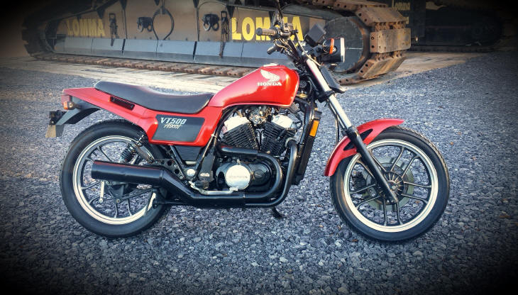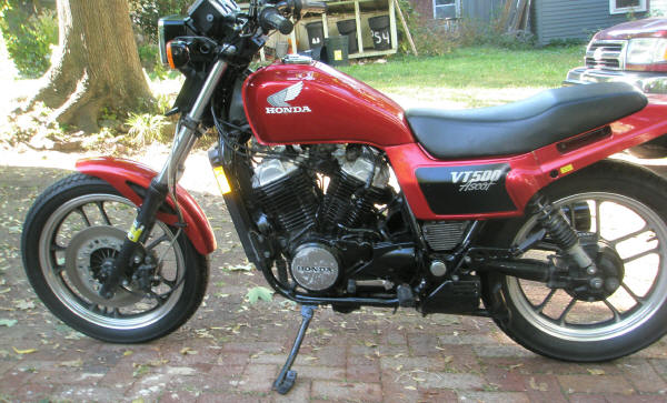 In just two weeks I am riding the bike. The carb cleaning seems to have worked well. Clutch feels fine. The ride is light. The handling is good. The engine revs to redline and pulls nicely. I've hit 85 mph and there's more power available. The 6 speed overdrive transmission keeps the revs down at high speeds. Brakes are good so I don't need to replace the front pads but I do anyway. Front forks seals are leaking but that is a future fix.  |