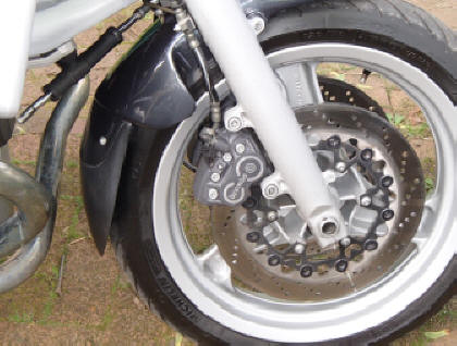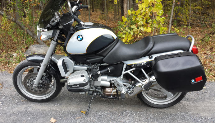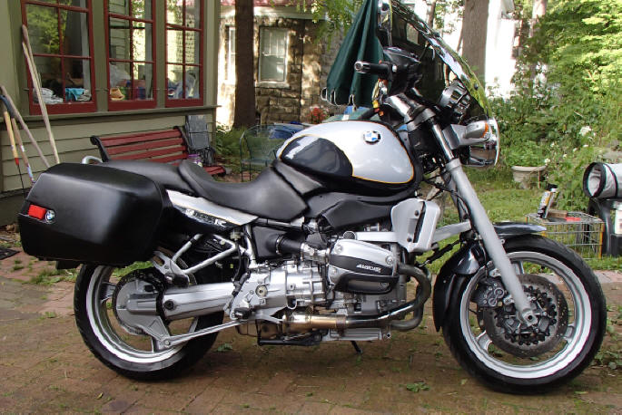 bike Andy, Mike and I ride to Seymour's Suzuki (Colonie) on a very hot afternoon the Friday before Labor Day to make a service appointment for Andy's VStrom 1000, and for me to ask some questions about the Suzuki Bandit 1200 carburetor / petcock problems. We see this bike, and another BMW that look particularly nice and not unreasonably priced. I ask for a better deal and get $500 off. This is now a great deal so we ask to test drive it. Easily done. Quirky BMW features. Side stand must be up for ignition to work, and the controls are unfamiliar to me as is the torque reaction when engine is revved. Before we leave, Andy does some on line price checking and we see that it is a fantastic deal. I go back in and get another $100 off on the condition that there's not going to be a warantee the bike isn't coming back for service. We make the deal and Andy I are are partners on this bike, just like we were on the Suzuki Gladius the month before.  |